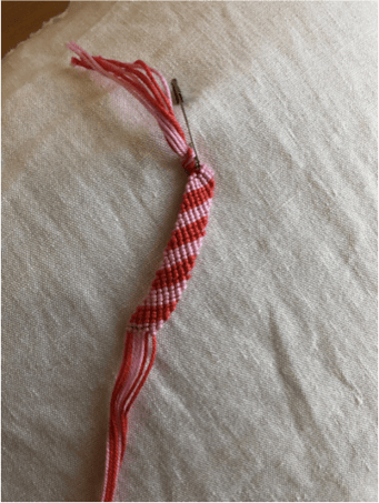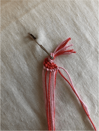 Wenn du die ersten beiden dunkleren Fäden geknüpft hast, sollte es so ausschauen...