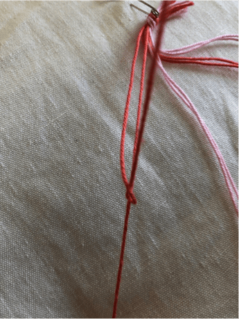 Verknote die Fäden an einem Ende mit einem einfachen Knoten.