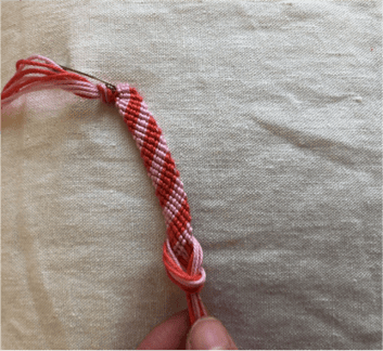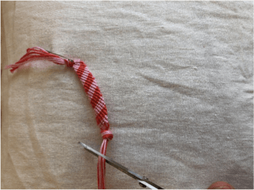Ist das Armband genügend lang für dein Handgelenk, machts du einen Knoten wie ganz zu Beginn.