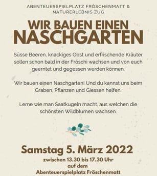 Zusammen mit "Naturerlebnis Zug" bauen wir am Samstag, 5. März 2022 auf der Fröschi einen Naschgarten.